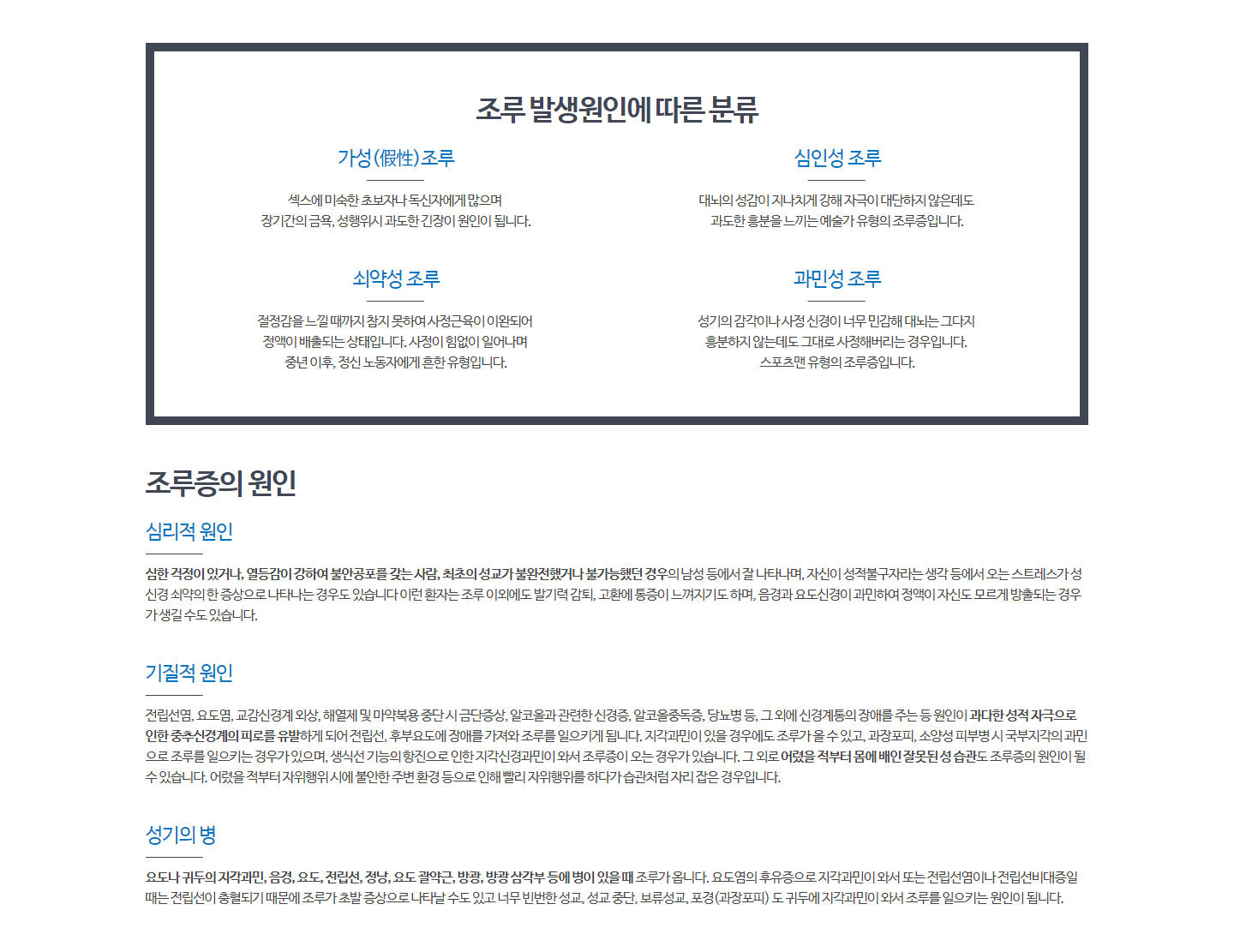 특히 비뇨생식기계병인 전립선,정낭,요도 등에 병이 있으면 같이 치료를 받아야합니다.